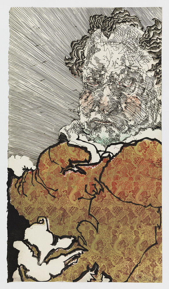 Engraving with gold leaf collage